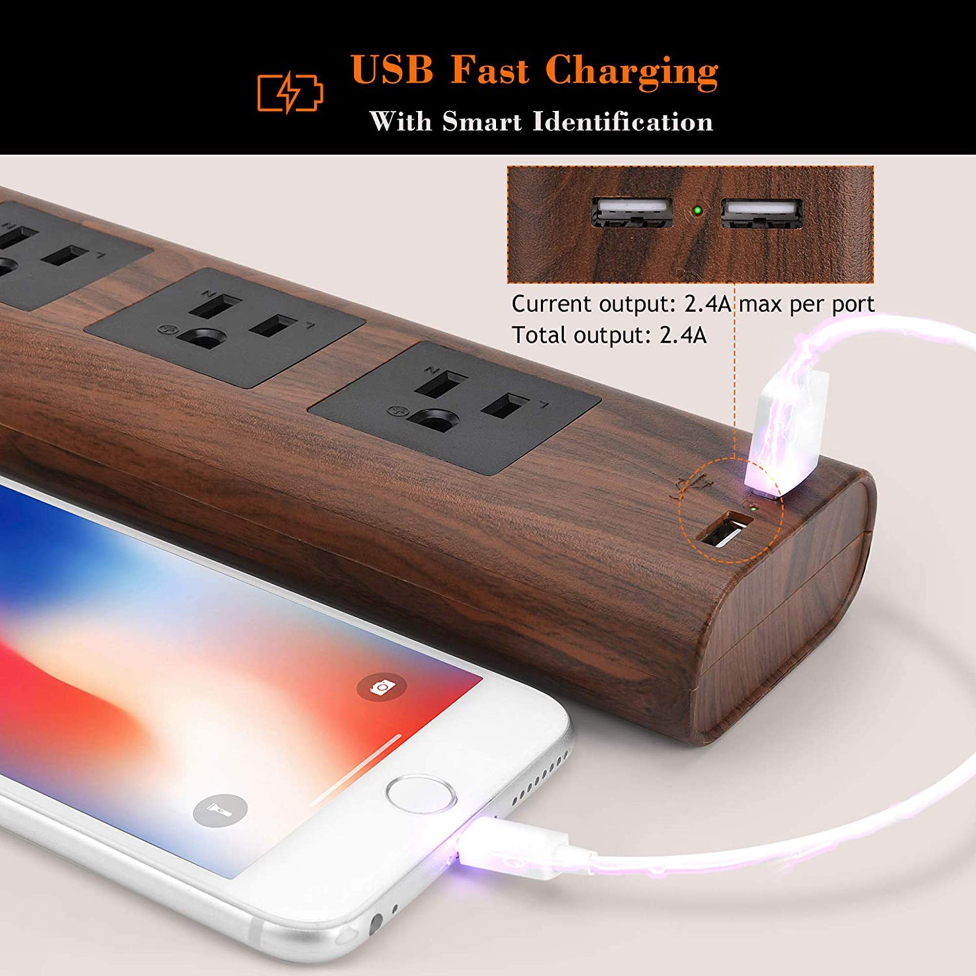 • 【Distinctive Color】: This decorative brown power strip features with brown wood grain which is different from traditional black/white power strip, and it’s perfect to decorate your desk in home, office.